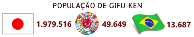 Gifu-ken tem população de 1.979.516 hab., incluindo cerca de 49.649 cidadãos estrangeiros, sendo aproximadamente 13.687 Brasileiros, 685 Peruanos, 297 Americanos, 9.996 Chineses, 5.238 Coreanos e outros (Dados Prefeitura, 2.019).