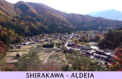 Aldeia Shirakawa-go, é uma pequena onde as casas são tradicionais com estilo Gassho, as grandes casas com seus telhados de palha abruptamente inclinados são os únicos exemplos desse tipo no Japão. Foi declarado Patrimônio da Humanidade em 1995. |
